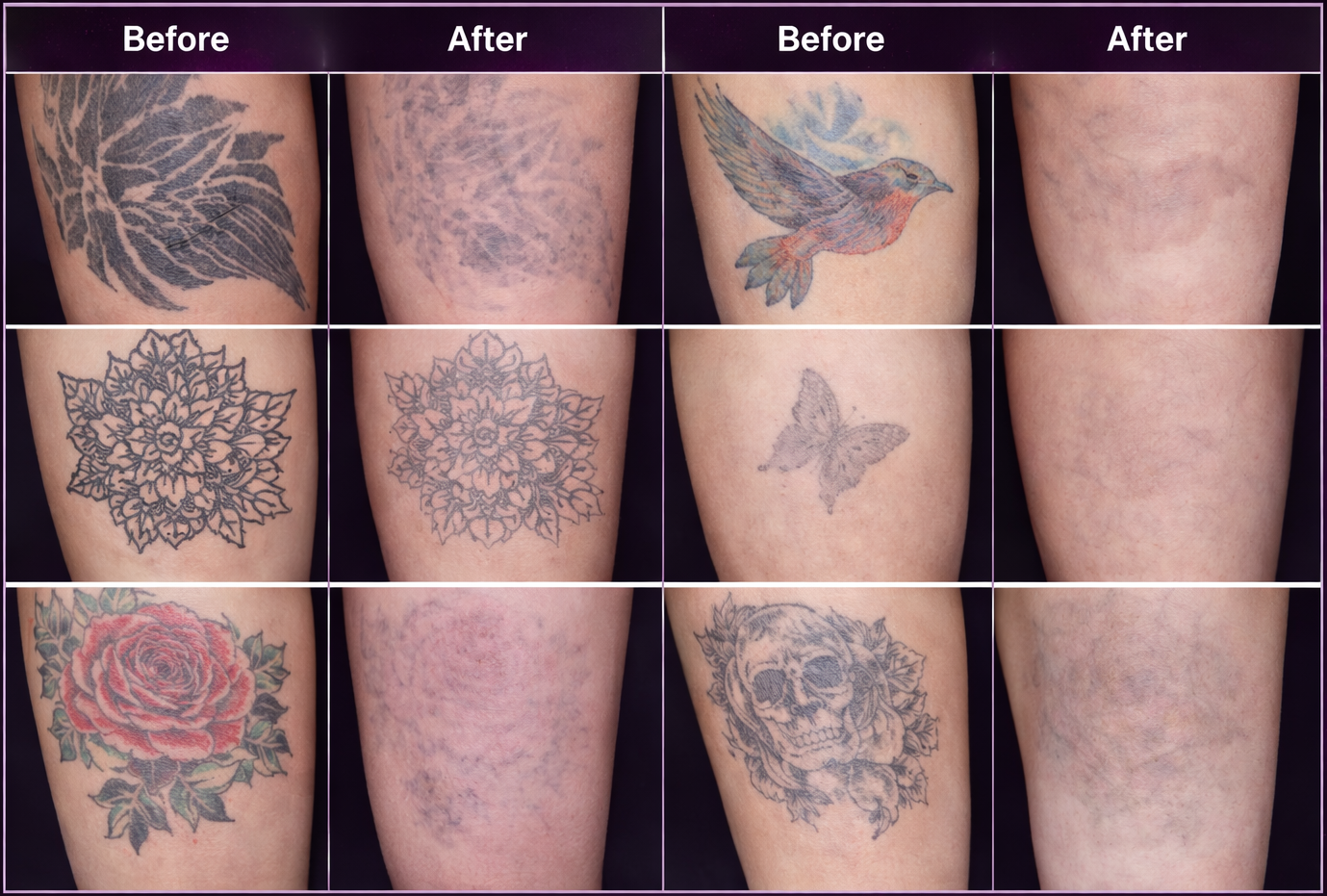 Laser tattoo removal is a gradual process, and results vary depending on factors such as ink colour, tattoo age, placement, and skin type.